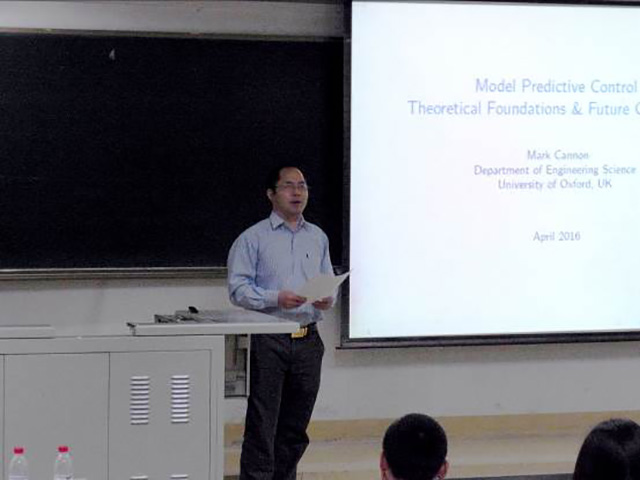 2016年4月9日上午9点,365英国上市公司第六届研究生学术论坛在信息教学楼1002隆重开幕,应365英国上市公司邀请,英国牛津大学工程学副教授Mark Cannon与北京航空航天大学郭雷教授参加开幕式并做学术报告。出席报告的有365英国上市公司副院长夏元清教授,闫莉萍老师、史大威老师以及365英国上市公司全体硕士研究生和博士研究生。报告由365英国上市公司夏元清教授主持。