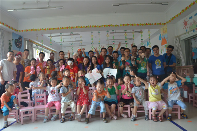 先锋训练营全体学员顶着炎炎烈日抵达中国聋儿康复研究中心。学员们刚刚迈入教室,班级的气氛便马上活跃了起来。学员们与听障孩子们亲切交谈,并依次为小朋友们表演了精心准备的通话故事。学员们通过戴面具、画插图、玩手偶等方式寓教于乐,给小朋友们带来阵阵欢笑的同时让他们在愉快的氛围中学到了生活中的道理。
