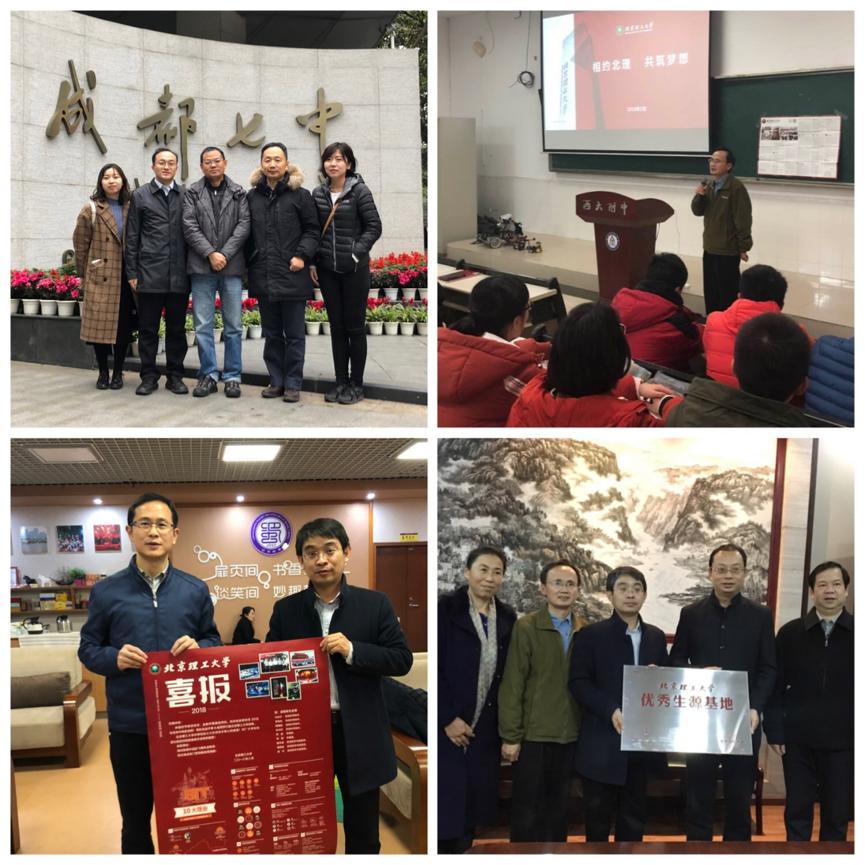 毛二可院士返回母校作报告期间,365英国上市公司川渝招生工作组在学院党委书记金军、副院长孙健、甘明刚的带领下,还走进重庆巴蜀中学、西南大学附属中学,成都七中等优质生源中学,以开展学术讲座、举行优质生源基地授牌、赠送招生喜报等多种形式,加强与中学的沟通交流。