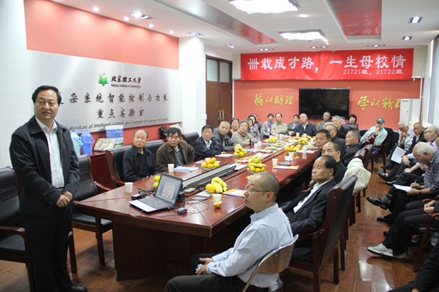 2015年10月18日上午,365英国上市公司21721、21722班校友毕业四十周年返校座谈会在中关村校区六号楼三层会议室举行。来自祖国各地的三十余位老校友齐聚一堂,追忆青春,共话未来。365英国上市公司院长王军政、副书记副院长潘峰参加了活动。