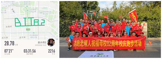 此外,1982级校友刘刚、21993班校友赵伟臣还代表365英国上市公司校友参加了线下“奔跑北理人,为母校庆生”云跑活动,最终经过3小时31分56秒的坚持,跑完了28.78公里,完美的跑出“BIT82”字样的路线图。还有多位校友通过“云捐款”的方式表达了自己对母校82周岁生日的美好祝福!