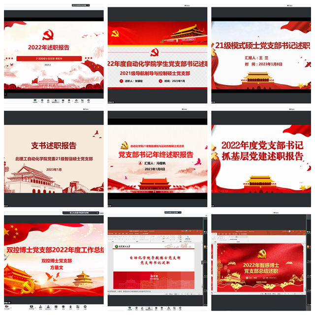 9位学生党支部书记就2022年党支部建设情况、履职尽责情况及未来规划进行述职汇报。